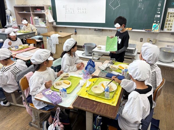 「緑の羽募金」のポスターをもってボランティア委員会の子たちが、各教室を回って説明していました。