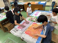 「どろどろ絵の具」で、手のひらや指を使って絵を描いていきます。