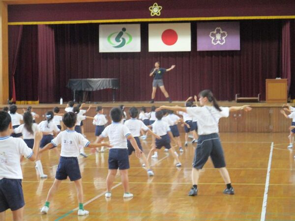 先生の模範演技と軽快な音楽とで、子どもたちも初日とは思えない、キレッキレのパフォーマンスを見せてくれました。これから更にブラッシュアップされていくかと思うと、本番が楽しみです。