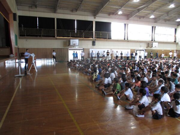 9月30日、久しぶりに気温も下がり、体育館で全校がそろってでの朝会を行いました。
