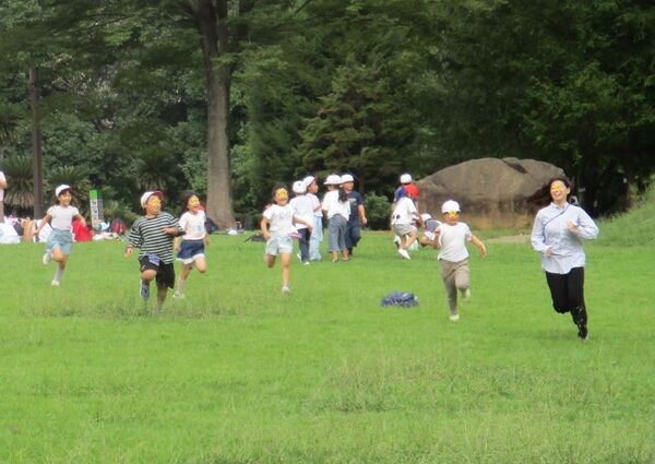 その後は、芝生広場で自由時間。やはり人気は鬼ごっこ。先生たちも交えて、楽しいひと時を送りました。