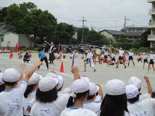 応援団は全体練習のために、事前に練習を積み重ねてきました。全校児童と一緒に練習するのは初めてです。