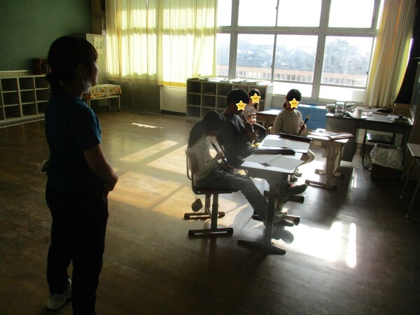 中学生が職業体験(未来くるワーク)として本校に来ています。今日が最終日、1年生の教室に入りました。本当は5人だったのですが、学級閉鎖などで2名がお休み・・・残念です。