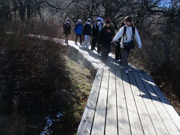 木道を抜けへ、地面を歩くと、所々ぬかるんでいます。おそらく雪や霜が溶けたことによるものでしょう。足もとを見ながら慎重に歩きます。