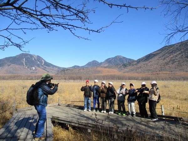 戦場ヶ原は快晴。空気は冷たいですが、ハイキングにはちょうど良い天候です。一昨日に降った雪が残っている所がありました。