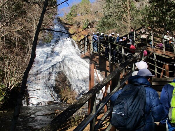 ゴールが近づくとゴーっという湯滝の水の音が聞こえてきます。その壮大な風景は、ハイキングの疲れを吹き飛ばしてくれました。