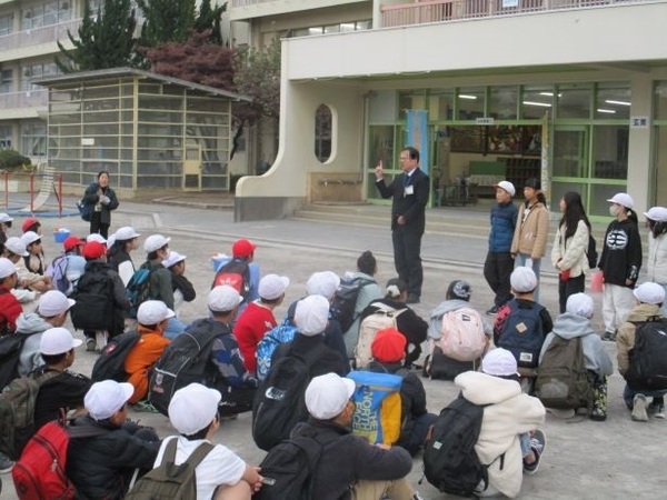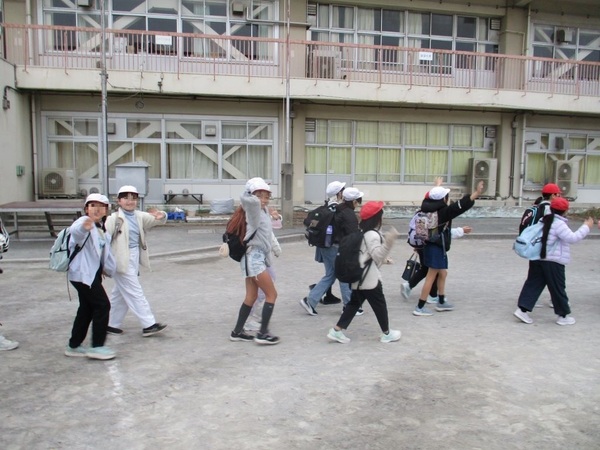 「東小の看板をしょって出かけてきます。しっかりとした行動で学習してきましょう!」