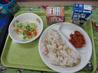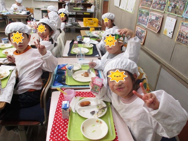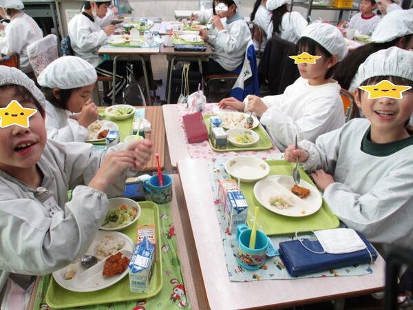 2学期の給食最後の日です。今日のメニューはクリスマスメニューです。