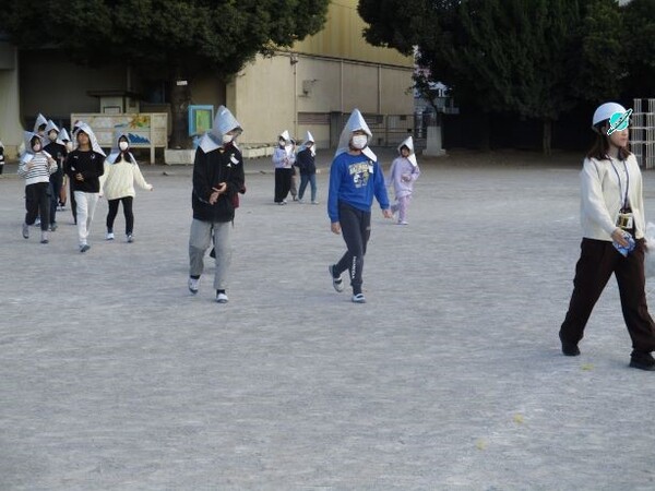 休み時間に地震が発生し、その後、火災が発生したという想定です。