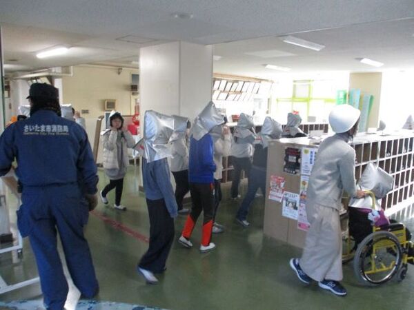 避難訓練を行いました。今回は大宮消防署の消防士さんにもご協力いただきました。