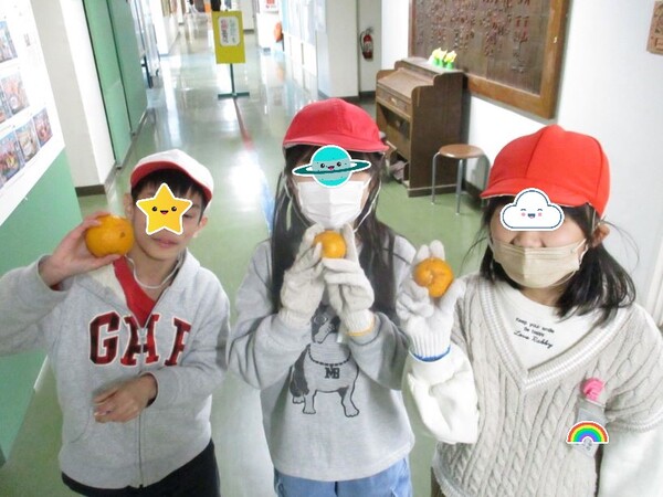 栽培委員会では校内で育っている柚子の木から、柚子を収穫し、嬉しそうに見せてくれました。