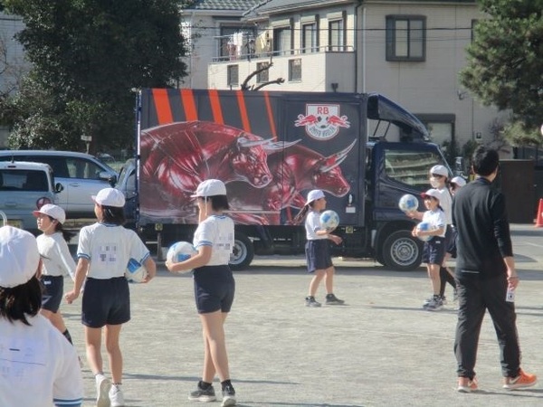 4年生にサッカーの指導をしていただきました。アルディージャ・スクール・キャラバンです。