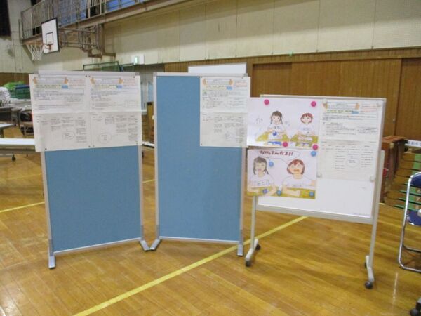 8つのグループはその研究の成果を体育館で、それぞれのブースでプレゼンし、参会者と交流を深め、学び合います。研修主任が、このスタイルにこだわりを持って進めてきました。これまでにない、新しいデザイン思考の研究発表スタイルです。