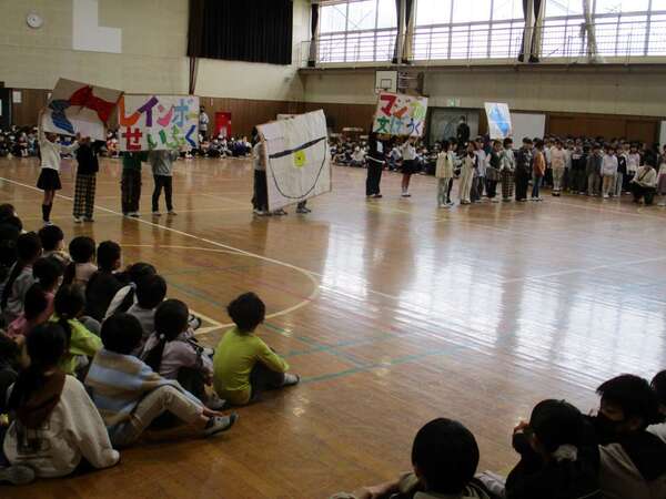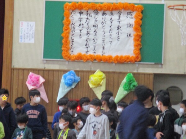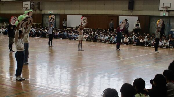 これまでお世話になった6年生へ、感謝の気持ちを伝えるために、各学年が心を込めた出し物を披露しました。