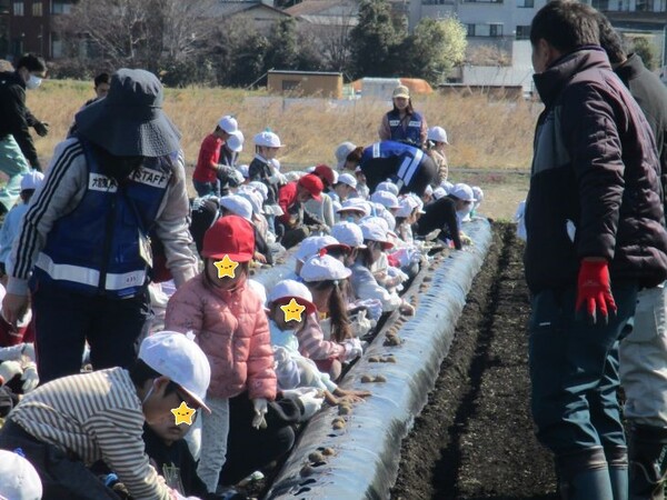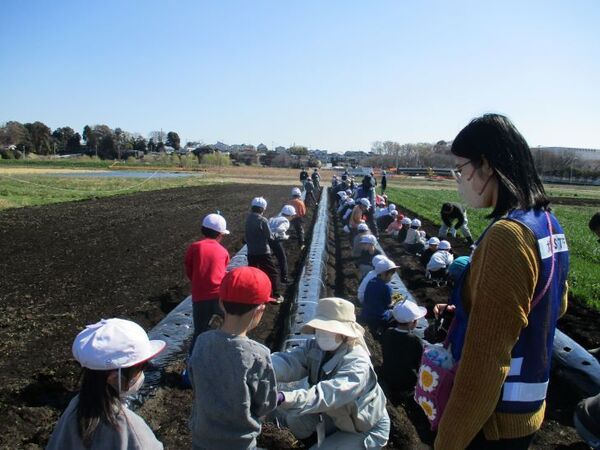 例年、大砂土観光農業推進協議会のご協力で、「じゃがいも栽培体験教室」を行っています。市営球場の北側にある見沼田んぼの畑をお借りし、種芋の植え付けと収穫の体験をさせていただいています。