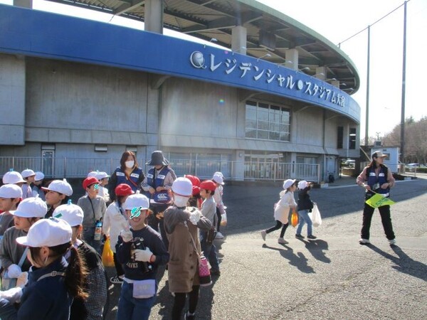 3月12日、 見沼田んぼまでは徒歩で移動します。1年生の足で中々の距離ですが、天候に恵まれ、日向はぽかぽかと温かく、体験教室日和でした。